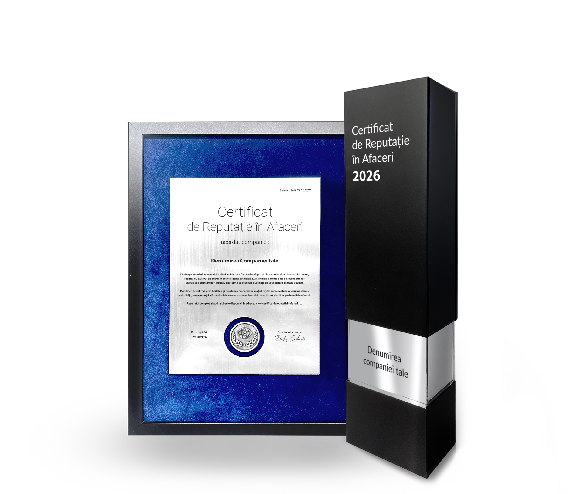 o distincție vizibilă în mediul online și în materialele de marketing. - Încrederea partenerilor de afaceri -